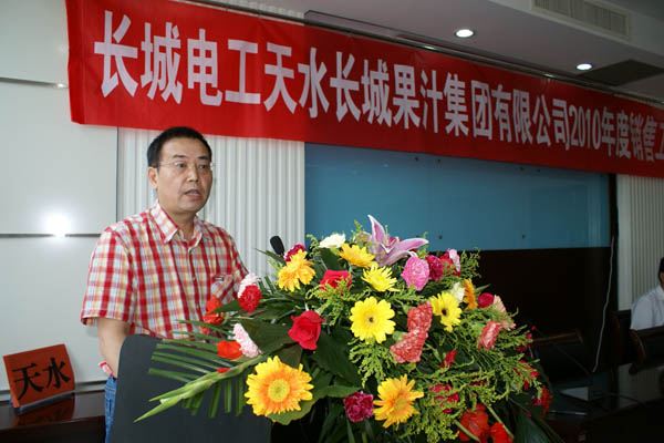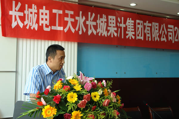蘭州長(cháng)城電工股份有限公司副總經(jīng)理毛建光作重要講話(huà)。他首先代表長(cháng)城電工對本次會(huì )議的成功舉辦表示熱烈祝賀!指出2009/2010榨季長(cháng)城果汁經(jīng)受住了果汁行業(yè)的嚴峻挑戰。面對2010/2011榨季,我們要保持積極樂(lè )觀(guān)的心態(tài),堅定信心,逆勢而上。